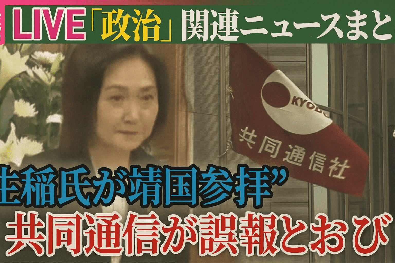 https://www.kyodo.co.jp/notice/ - 生稲晃子政務官『靖国参拝』誤報に関する社長会見(2024/11/25)